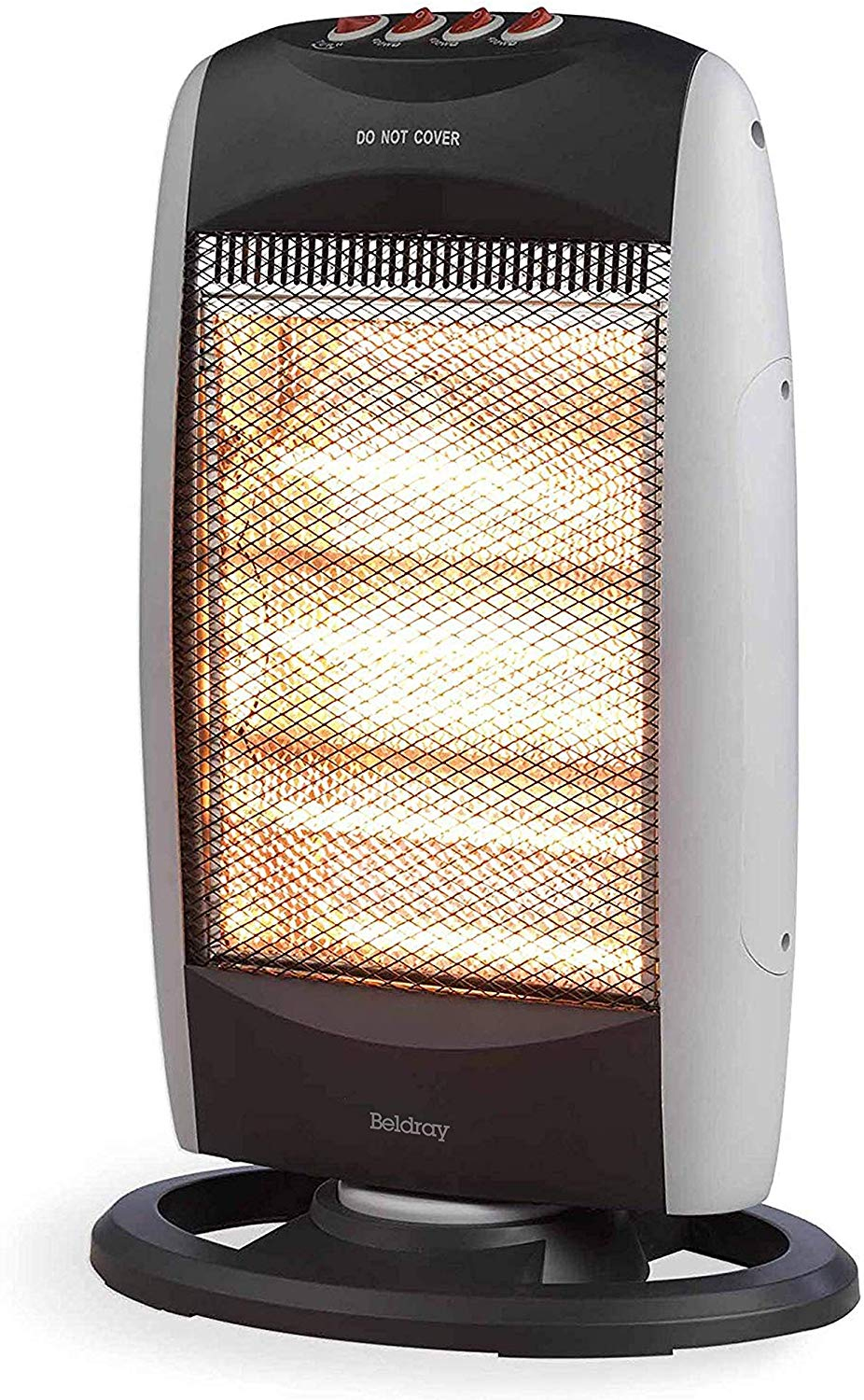 Halogen heaters have come along way since the overly-bright, noisy-when-oscillating models of a few years ago. There are three heat settings so you can select the right level to make your room nicely comfortable, and the wide oscillating function will evenly spread the heat, so the full room receives attention. Infrared technology focuses the heat, to ensure you aren’t warming areas which don’t need to be warmed. The base is sturdy so it won’t start wobbling when it is turning, and if it does happen to fall over or overheat, then the safety cut-out and tip over switch will ensure it turns off immediately. A good thing about halogen heaters is that the tubes can often be replaced, like with this model, so even if one stops working you aren’t left with an unusable product. There is a carry handle to make positioning and moving it easier, and the outer plastic casing doesn’t get hot when in use. As a bonus, it is quiet when in operation. Older models were notorious for making a constant whirring and clicking sound when oscillating, but this one is smooth and a lot less noisy. There is also a good chance that you will only need to keep one bar on to maintain the heat after the initial three-bar maximum heating, so it is good at keeping costs as low as possible. Halogen heaters are incredibly effective at what they do. This one takes some of the stress out of the bars not working and the appliance becoming completely redundant, which alone puts it miles ahead of the competition. With three heat settings for optimal comfort, the Pifco Portable Halogen Heater is one of the most popular halogen heaters on the market and comes with a built-in mini handle so you can pick it up and move it comfortably. Create the ideal temperature no matter where you are, whether that’s relaxing at home or working in a chilly office during the colder months. This portable heater also comes with 70 degrees oscillation, so you can choose to move it gently to the left and right to ensure optimal and even heat distribution throughout any room. An easy user interface with simple, large buttons means you can turn it on and off easily, adjust the temperature and choose to move it left to right with ease. What’s more, there’s a safety tip over switch to prevent any danger. This basically means it turns itself off if you knock it over, or leave any object too close, and stops any potential fire hazards. A lightweight and portable design enables you to easily transport from one place to another, and as it heats up and cools down fast, you don’t need to wait too long after being turned off to take it from A to B. Plus, the clean, white rectangle design with a sturdy base fits in perfectly no matter the interior, so it’s both practical, comfortable and pretty stylish. The stylish and portable design is a good addition to any room. With safety tip-over switch on this halogen heater, you can rest easy even if the kids or dog knock it over. The Beldray COMBO Three Bar Halogen Heater doesn’t just offer practicality, but the charcoal and neutral colours also look very stylish. This portable, lightweight heater injects instant cosiness and warmth into any room in the home or workplace. Three heat settings (400, 800 and 1200W) means you can easily warm up any room, whether that’s your bedroom, living space, or whilst at your place of work. There’s also a wide-angle oscillation, which turns it slowly left to right to ensure all areas of said room are warmed up. Avoid sitting too close, it’ll warm up soon enough! Replaceable tubes mean you can easily change them once they run out, ensuring the heater doesn’t go to waste. It’s also designed to prevent energy waste, and cools down just as easily as it warms up. As the heat is distributed quickly and efficiently, you don’t need to keep it running for prolonged periods, which means it’s also very cost-efficient. As with many similar heaters, it includes built-in safety features such as a thermal cut-out device, to prevent the room getting way too hot too quickly, and tip-over switch so there’s no chance of fire hazards. Plus, it comes on a sturdy base, and a built-in handle makes it super easy to carry from one room to another in the house (or, take it to an entirely different location). The size also makes it easy to transport, measuring in at 31l x 10w x 51h cm. This particular model comes with a set of two, which is great for having in multiple rooms or if you are buying for multiple offices. The Staywarm 1200W does exactly what it says on the tin – helps you stay warm no matter where you are! This halogen heater has lifelong tubes and uses Halogen gas to increase bulb brightness and longevity. Plus, it allows it to operate even more safely at higher temperatures than traditional heaters. There’s a total of three heat settings, ranging from 400, 800 and 1200W, so you can choose optimal comfort depending on how warm you want to be. Compared to similar Halogen heaters, it has a greater oscillation (90 degrees compared to a lot with 70 degrees). This means even greater heat distribution, great for warming up rooms even quicker than ever, especially bigger rooms. An adjustable design and just 46cm in height mean it can easily be transported from work to home and visa versa. Plus, the fact it cools down so fast means you don’t have to worry about turning it off hours in advance to make sure it’s safe enough to travel; it’s simply a matter of minutes. Last but not least, it’s incredibly safe to use. It comes with an overheat protection, which disconnects if it becomes too hot, and a safety tip-over switch turns it off automatically if it’s removed from its upright position, so there are no worries about fire hazards or material damage if it’s accidentally knocked over. This halogen heater is lightweight and portable. It is simple to use, safe, and it is one of the lowest priced models we have reviewed. Like many great portable heaters, thi