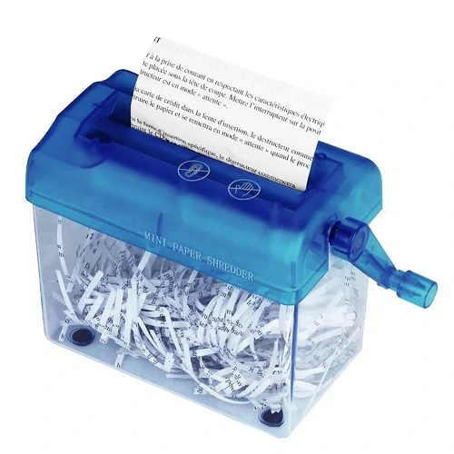 For a relatively cheap shredder, this Amazon own brand can handle a lot of what you throw at it. It can do around eight sheets of paper at a time, although we would always recommend sticking to a lower amount to prevent overloading and heating. Not only that, but it can accommodate CDs and DVDs too, so wherever your data is stored you can dispose of it safely. The latter two have a dedicated slot and button, which will cut the disc into four pieces. Just press down gently, and there will be no going back. There is a two minute run time before it has to cool for at least 15 minutes, but this is perfectly fine for home office use where it probably won’t be continually shredding all day every day. If you try to push it beyond this, it will shut down automatically. Auto start gets it going as soon as paper is detected, and manual reverse allows you to intervene if you sense a blockage or jam is about to occur. There is no denying it is a very basic model, but for the price, what you get is actually pretty great. Some shredders on this level can easily retail for twice the price. The paper is stripped into 0.65cm shreds which is fine for home use and any personal documents – you can always dispose of them separately if you’re feeling extra cautious about any thieves who happen to be armed with a roll of sellotape. Despite the fact it isn’t quite the cheapest in our rundown of reviews, we think it is the best value which is why it is our best budget paper shredder. Basic, does the job and can handle a lot of materials beyond paper. A good little home office addition to have. If you’re going just to be shredding the junk mail which comes through your door on a daily basis, or a bank statement every so often, you’re not going to want to spend £50+ on a shredder. This is where this ProAction comes in. For under £20, it will strip your papers into ribbons which allows you to dispose of them safely, whether you like to keep them in several different waste batches or are happy that no amount of piecing together will get it all in order again. It can handle a maximum of five sheets of paper at any one time, but we would always recommend not to fill it to maximum capacity so three sheets may be the limit here. When we tried any more, it did seem to struggle a little bit. A 10-litre wastebasket will allow you to keep going for a little while without emptying it all out, but don’t let it fill up to the top as this can prevent further paper being shredded. It does jam relatively easily compared to the others reviewed, but a reverse function will sort this out as long as you haven’t overloaded it. All in all, for the price it is great for a low-duty, basic cheap and cheerful shredder which is more secure than ripping up all the paper or leaving it piled up on the coffee table, and safer than burning it. ProAction 5 Sheet 10 Litre Strip Cut Shredder User Manual Cheap and cheerful and perfectly equipped to handle those basic shredding tasks Whatever your reasons for wanting a mini, portable and manual shredder (low cost/ease of use/compact size/for those in-between minor shreds/only wanting to cut receipts etc. etc.), it can be hard to find a decent one. Why? Well, some are barely powerful enough even to mark paper never mind shred it. Some are far too over complicated to use. Some are simply too much effort to bother. However, this one is a little mini shredder which actually packs a punch. The paper slot is A6 size but will accommodate a folded piece of A4. Ribbons come out at about 3-4 mm in size, depending on the width of the paper used. It will only hold one paper at a time and takes some effort to turn the crank, but at the end of the day, it is a very affordable way to shred those occasional bills and statements which come through the door. Don’t risk cutting card or anything similar though – you’d be on course for a disaster. After all, if you’re somebody who lives their life online with banking/bills/accounts and all you get is the odd bit of addressed junk mail, you’re not going to need an all-singing-all-dancing £100+ machine, are you? Maybe you just need a machine to shred old till receipts and general small business letters. Either way, for the price you can’t grumble. Plain and simple, which will cover all of those minor shredding tasks with no need to scramble for a plug socket.AmazonBasics 8 Sheet Strip-Cut Shredder with CD Shred